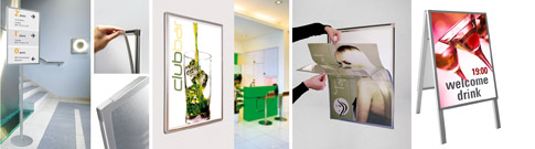 Schnellwechselrahmen mit Magnetverschluss. Aus silber eloxierten Aluminiumprofilrahmen und stabiler Kunststoffrückwand. Die Abdeckung aus flexibler, nicht spiegelnder PVC-Folie ist komplett abnehmbar. Eine starke Magnetleiste hält die Deckscheibe sicher fest. Info-Wechsel schnell und einfach, magnedoor ist für horizontale sowie vertikale Montage geeignet.